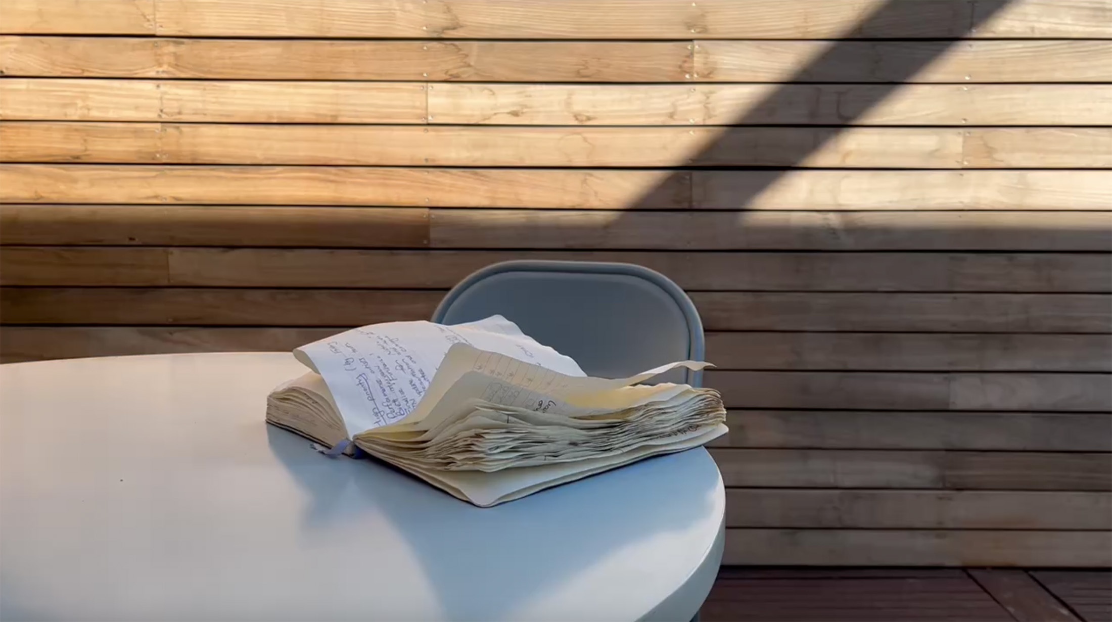 Following a leaky water bottle incident, a bag and notebook are left out to dry upstairs at A4.
