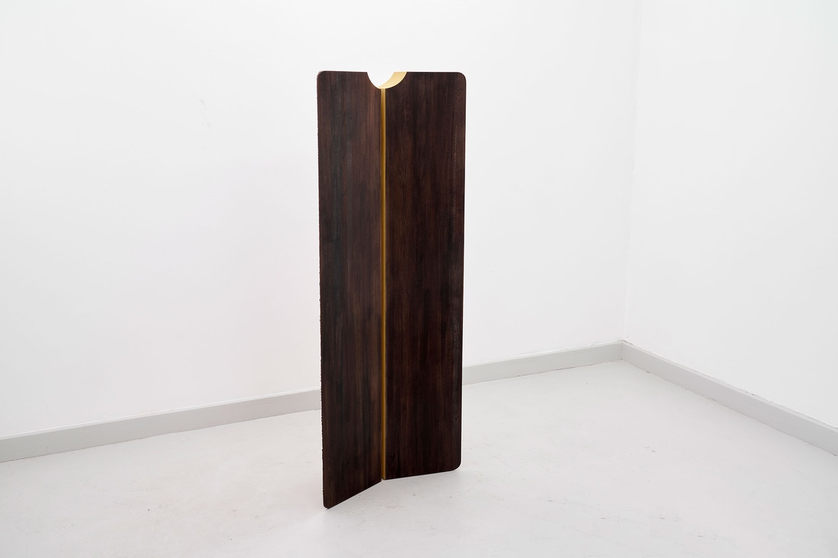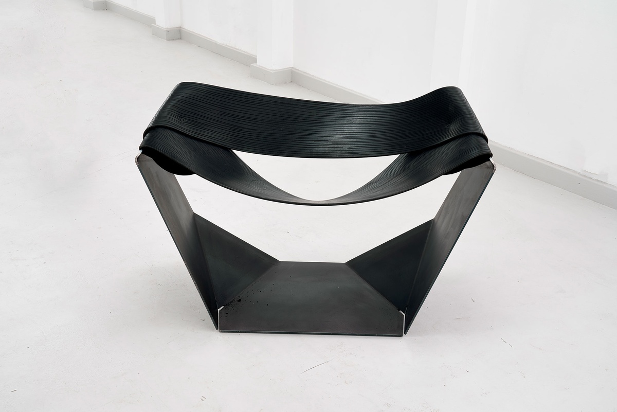 From this implement made for a purely utilitarian application, Kriel begins a line of enquiry through work and value in the forms he makes: furniture-like objects that are faithful to tool-like forms yet inspire unusual rest. Where they are comprised of components that are mechanical in sentiment, they inhabit a complicated status as ‘workable’ objects.
