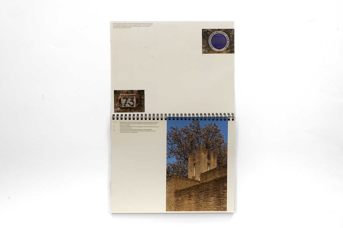 In the early spring of 2025, A4’s team was granted permission to document the Johannesburg home of sculptor Edoardo Villa by its current custodian, Lunetta Bartz. Designed by architect Ian McLennan, a friend of Villa’s, the house was completed in 1968.