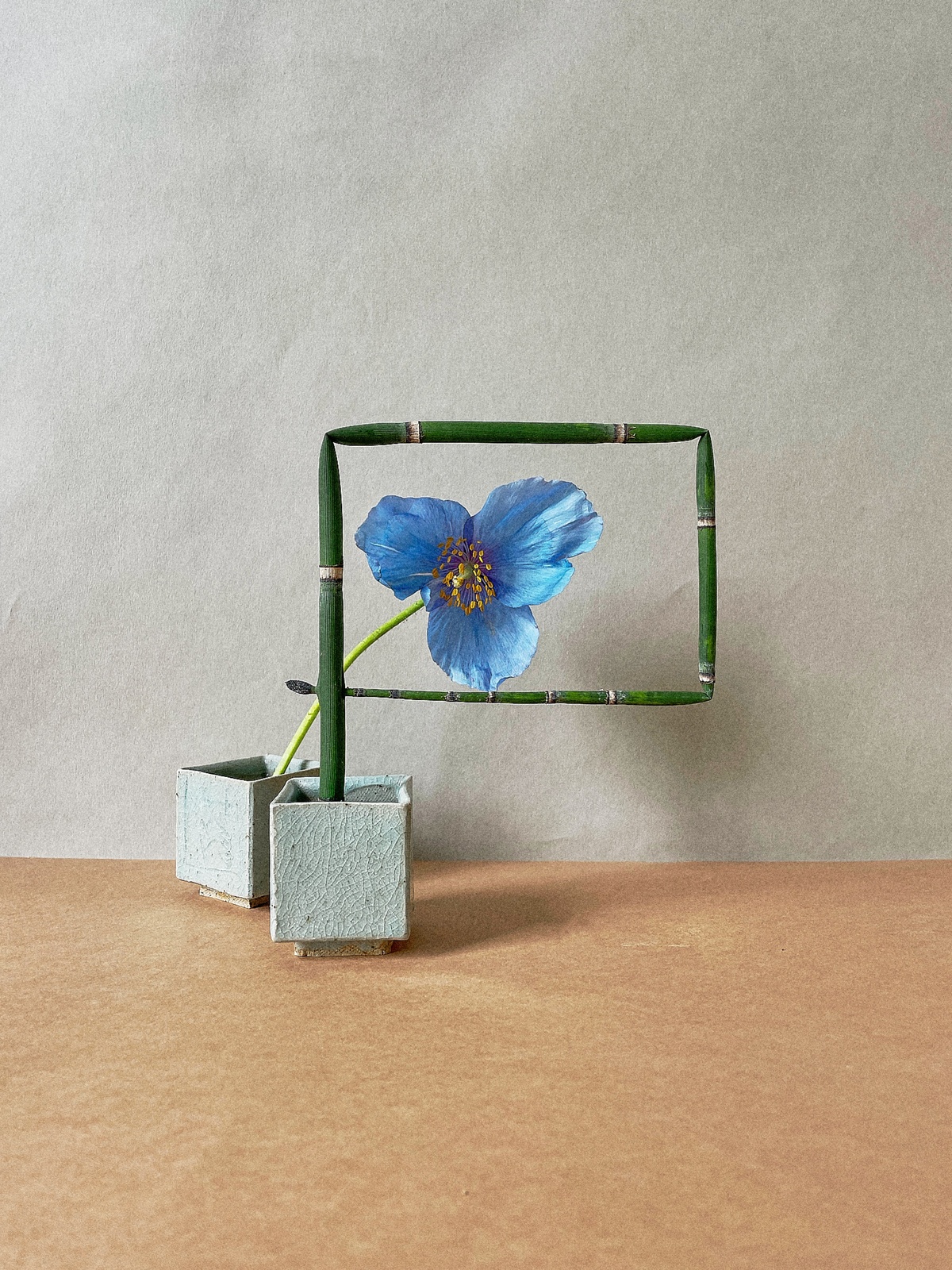 C.F. One of my favourite arrangements in the Ohara Ikebana School curriculum is the hanamai. When it was first taught to me in 2017, I understood that it was an arrangement that captured a conversation or an interaction between plants … ‘Hanamai’ actually translates to ‘flowers dancing’ – I like to think of it as an exchange.