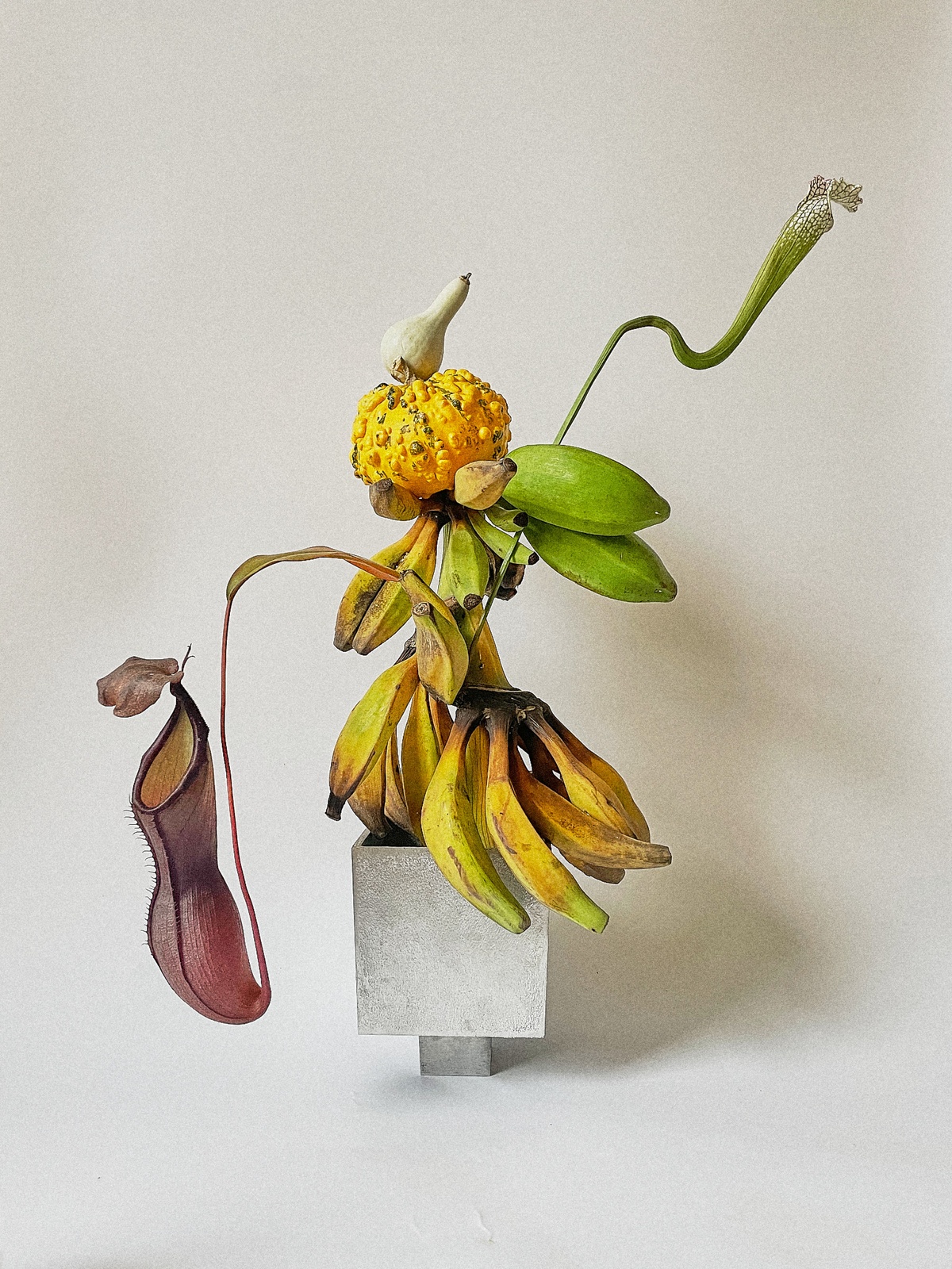 C.F. I've always found vegetables interesting because they're often not seen as plants. It reminded me of going to Chinese supermarkets with my parents and seeing a variety of ‘unusual’ vegetables. When I was young, these plants didn’t exist outside of home-cooked meals. Over time, I realised that working with plants wasn’t only picking flowers from a field, but having an interest in vegetables also counts.