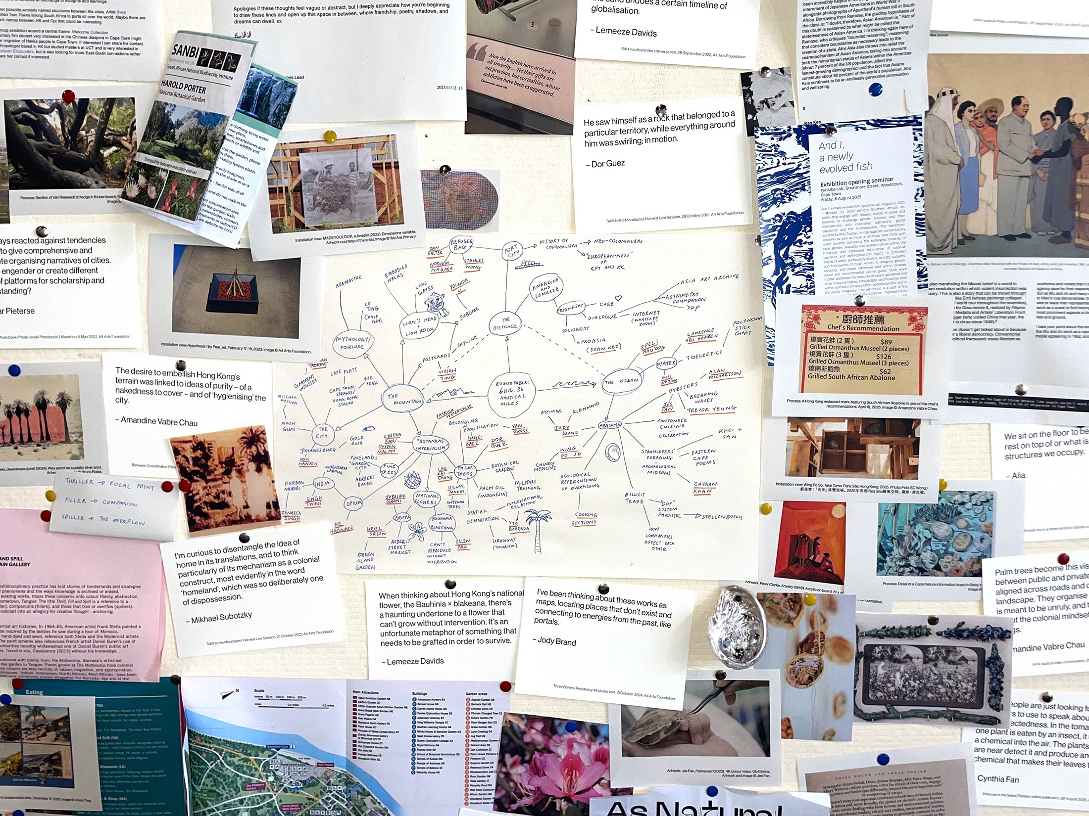 This roundtable discussion marks the mid-point of 6414.36 nautical miles, a Course of Enquiry bringing together a group of practitioners whose work intersects with the histories of Hong Kong and Cape Town as port cities. Hosted at Delfina Foundation in London during the week of Frieze, it uses the gravitational pull of the art fair to think through two coordinates of research: botanical imperialism (palm trees, pine trees, plant migrations) and marine entanglements (abalone smuggling, mollusks, ocean ecologies). Meeting in England invites a direct confrontation with the British imperial histories that continue to affect both Hong Kong and Cape Town.