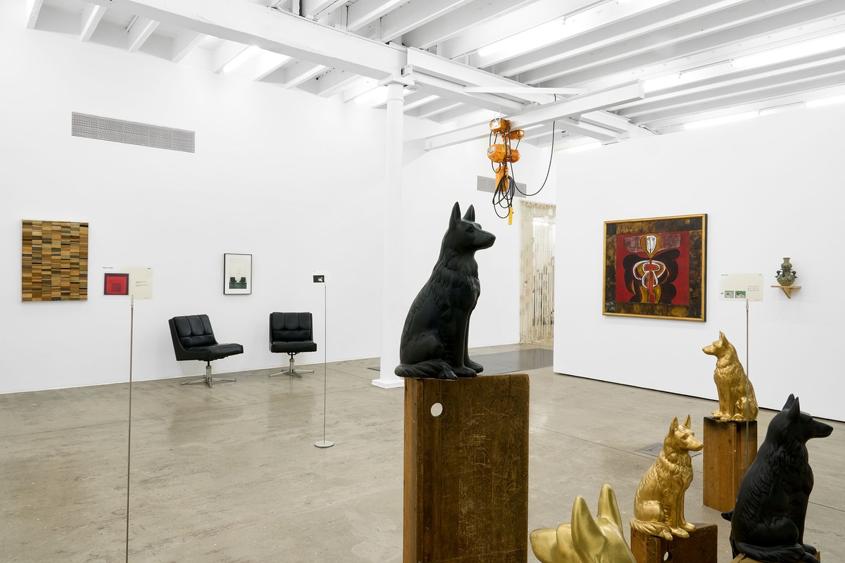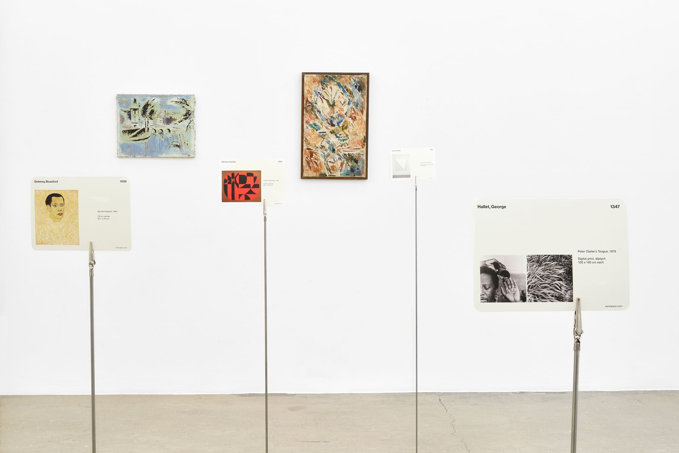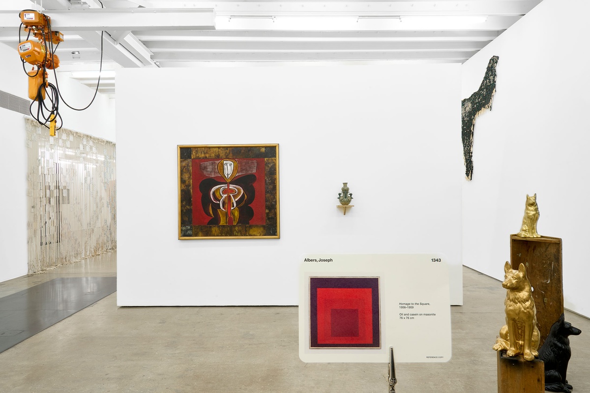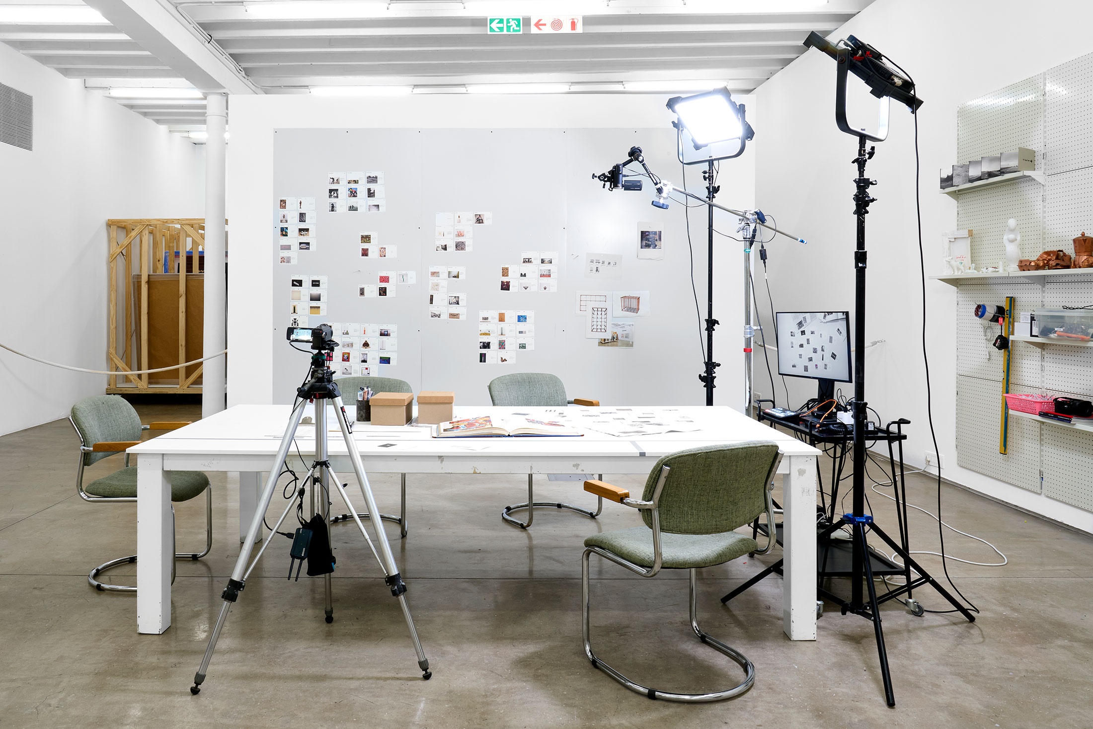In preparation for this project, we printed a deck of cards, with each card representing a work. Multiple discrete objects, given this uniform ‘frame’, could be played alongside one another. With everything pictured at once, connections became visible, uninhibited by geographical distance or pre-conceived hierarchies. This is a 'Sightline' – a passage to thought that emerges across the chatter of like and unlike things in the room. Sets of artworks constellate along an axis and come into focus. Our approach has been to edit and refine curious lines of sight, installing select artworks in the gallery with cards remaining as stand-ins for others.