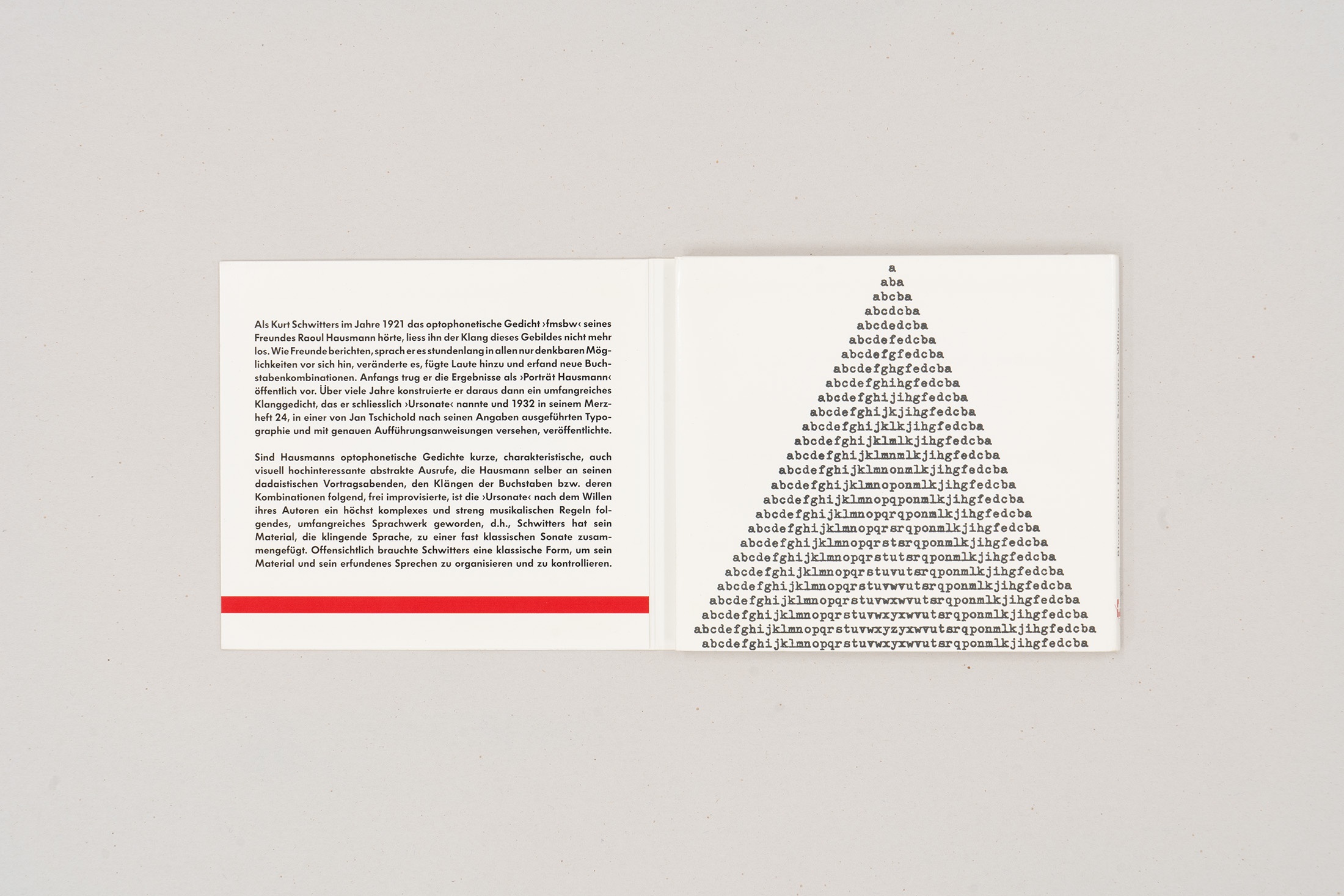 Chance combinations of letters suggest sounds and rhythms rather than meaning. Raoul Hausmann described this as ‘optophonetics’ – an optical impression of a sound. Kurt Schwitters and Theo van Doesburg harnessed this strategy in their development of ‘concrete’ poetry, taken further by the Lettrists in the 1940s.