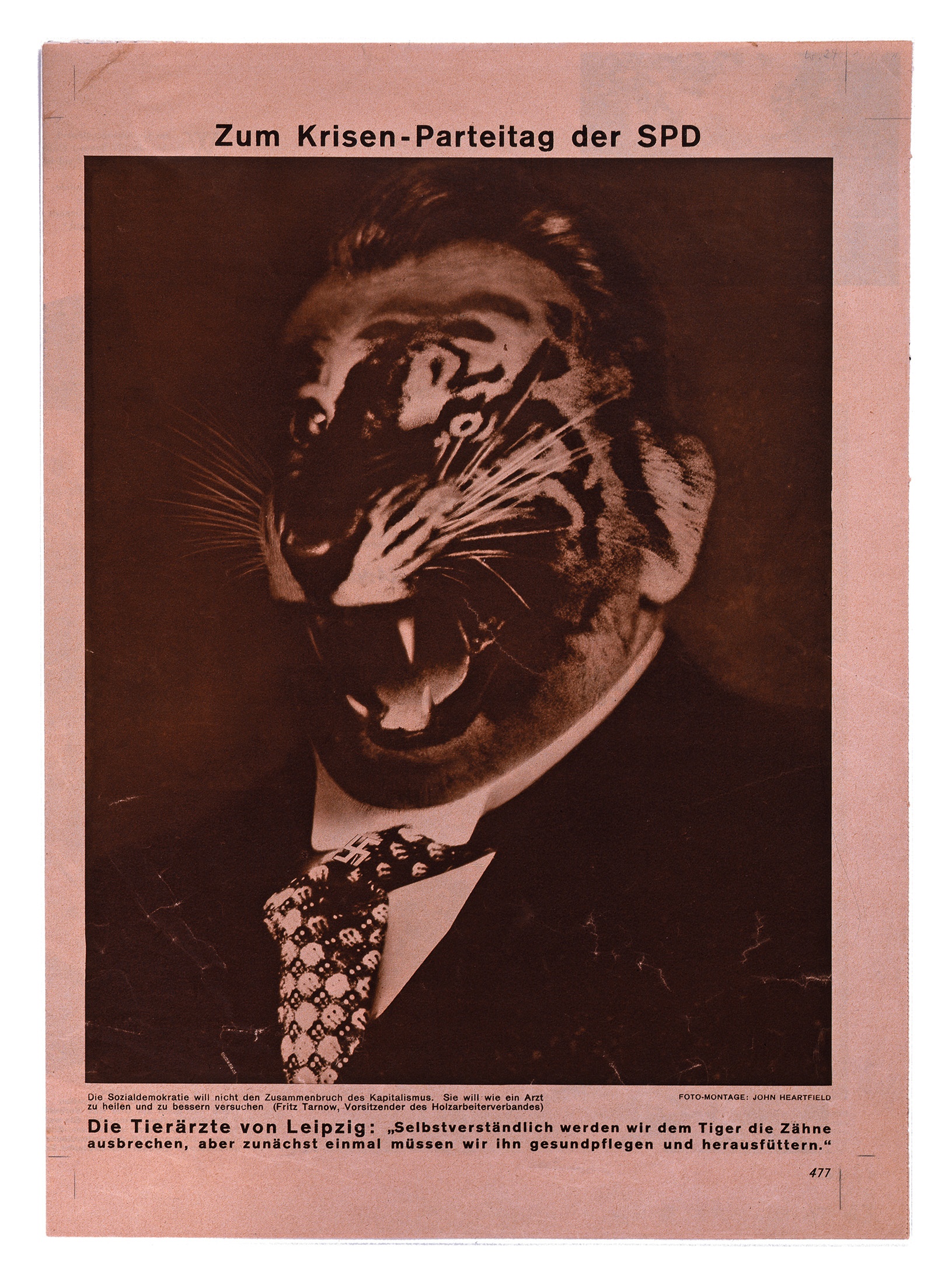 Poster: John Heartfield, Zum Krisen-Parteitag der SPD / On the occasion of the Crisis Party Conference of the SPD (1931). Photomontage. Originally published in Arbeiter llustrierte Zeitung, No. 24. 39 x 27.8 cm. Courtesy of Akademie der Künste, Berlin, Kunstsammlung.