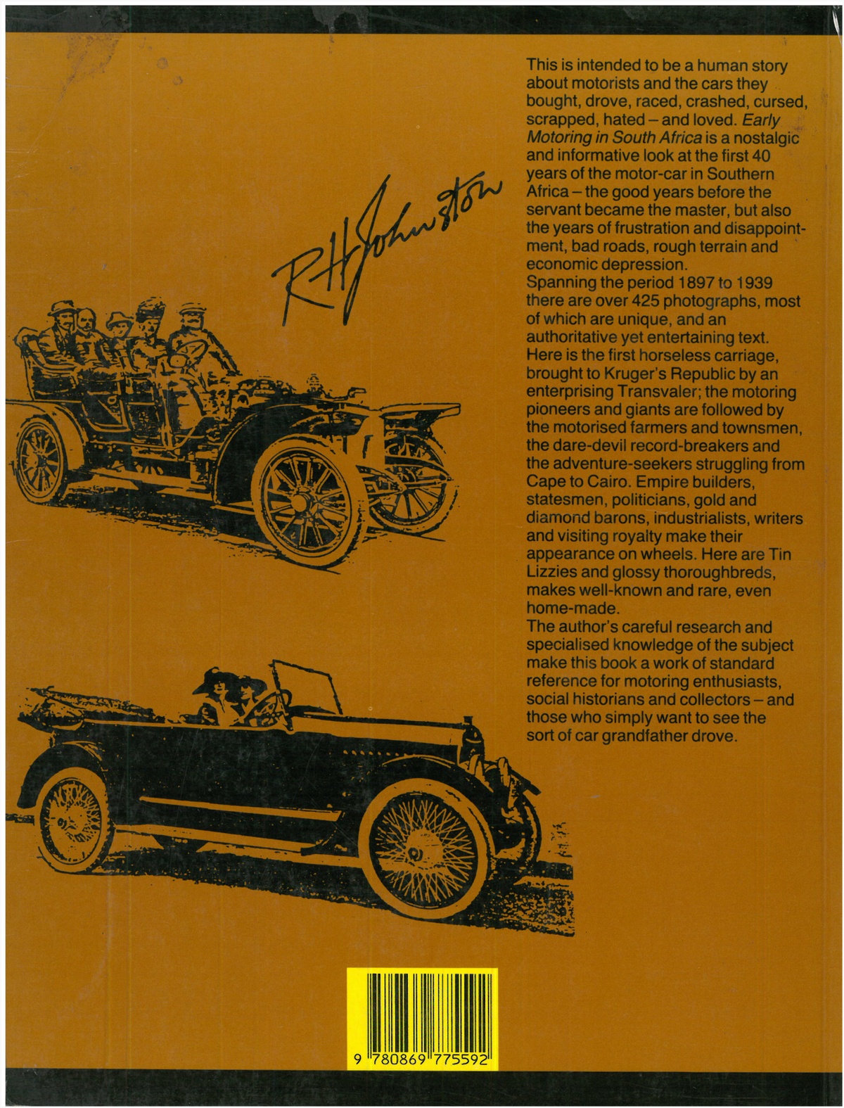 Johnston, R.H. (1987) Early Motoring In South Africa: A Pictorial History. Cape Town and Johannesburg: C. Struik (PTY) LTD.