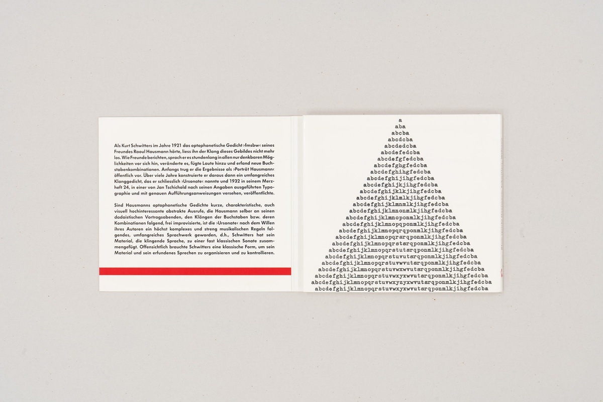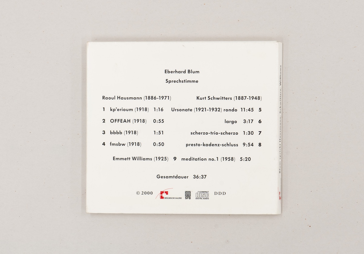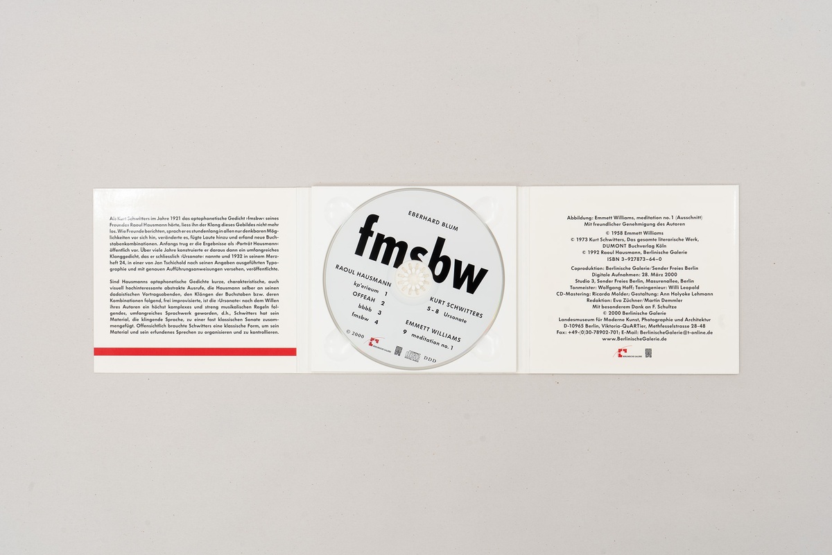 Publication: Blum, E. (2000) fmsbw – Works for Spoken Voice by Raoul Hausmann, Kurt Schwitters, Emmett Williams. Berlin: Berlinische Galerie. Image courtesy of A4 Arts Foundation.
