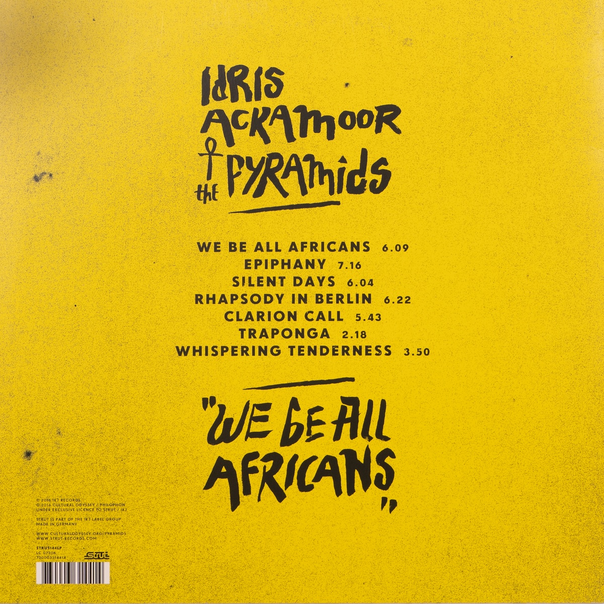 Idris Ackamoor founded the Pyramids in the early 1970s while attending Antioch College. The band developed its style during a lengthy tour of Africa, living in Kenya, Ethiopia, and Ghana. It combined American jazz and soul with folk and popular music from East and West Africa. In 1977, the band's original line-up broke up. Ackamoor has, however, reformulated the band multiple times. We Be All Africans is one of its newer releases.