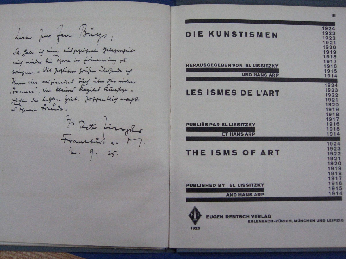 Publication: Arp, H. & Lissitzky, E. (eds.) (1925) Die Kunstismen/Les ismes de l’art/The isms of art. Zürich: Eugen Rentsch. Courtesy of Kunsthaus Zürich, Dada-Sammlung.