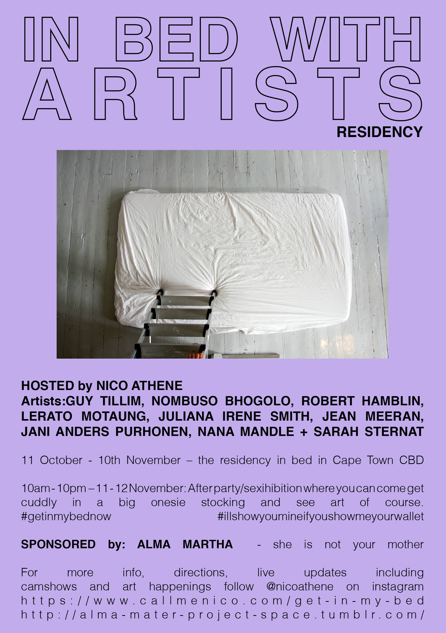 Poster: In Bed With Artists by Alma Martha, Cape Town, October 11–November 10, 2017. Image courtesy of Juliana Irene Smith.