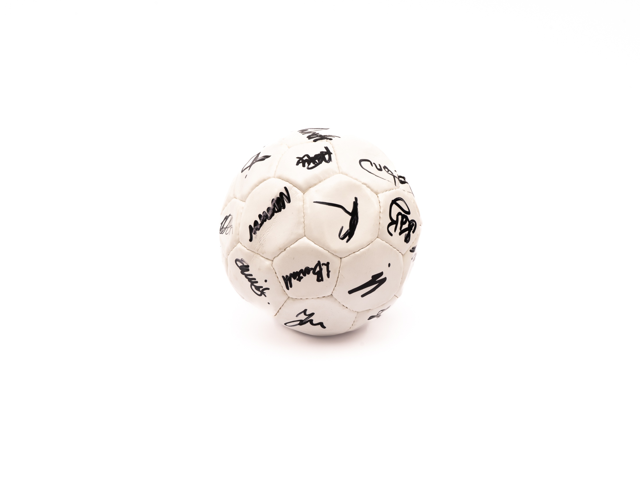 A soccer ball signed by individuals across the local arts ecology on the occasion of Exhibition Match.