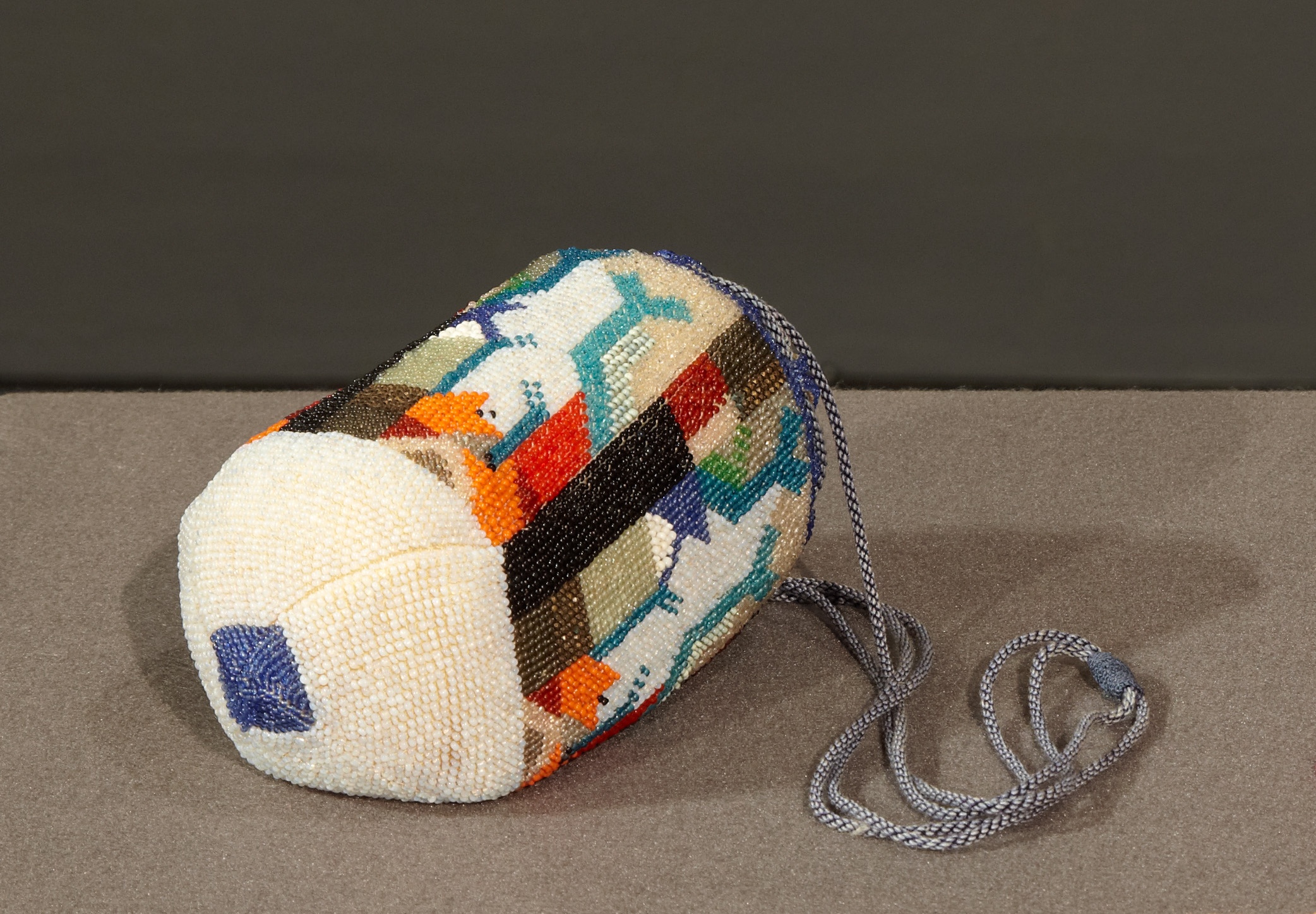 Artwork: Sophie Taeuber-Arp, Ridicule Pompadour: Perlbeutel / Beaded Pouch (1919). Silk, glass beads and embroidery. Artwork courtesy of Museum für Gestaltung Zürich, Kunstgewerbesammlung. Image © Sebastian Voigt.