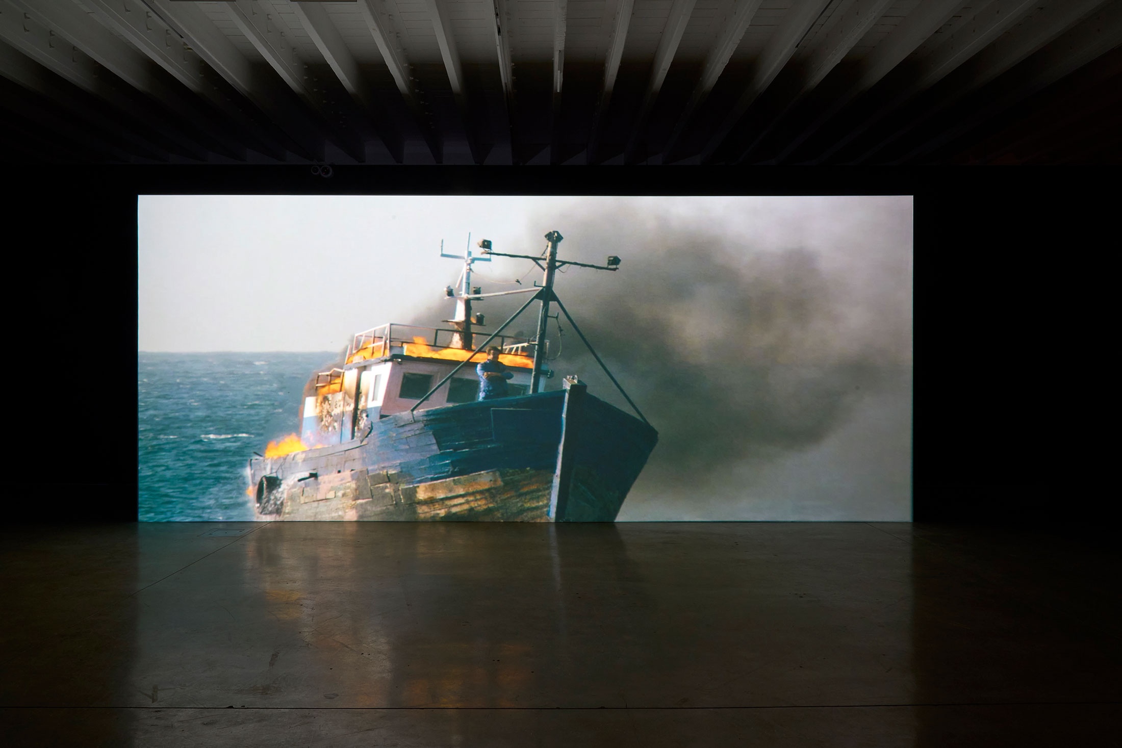 Artwork: Adel Abdessemed, Jam Proximus Ardet, la dernière vidéo (2021). Video projection (colour, sound). 1 min 40 sec. Artwork © and courtesy of Adel Abdessemed, Paris ADAGP. Image © A4 Arts Foundation.