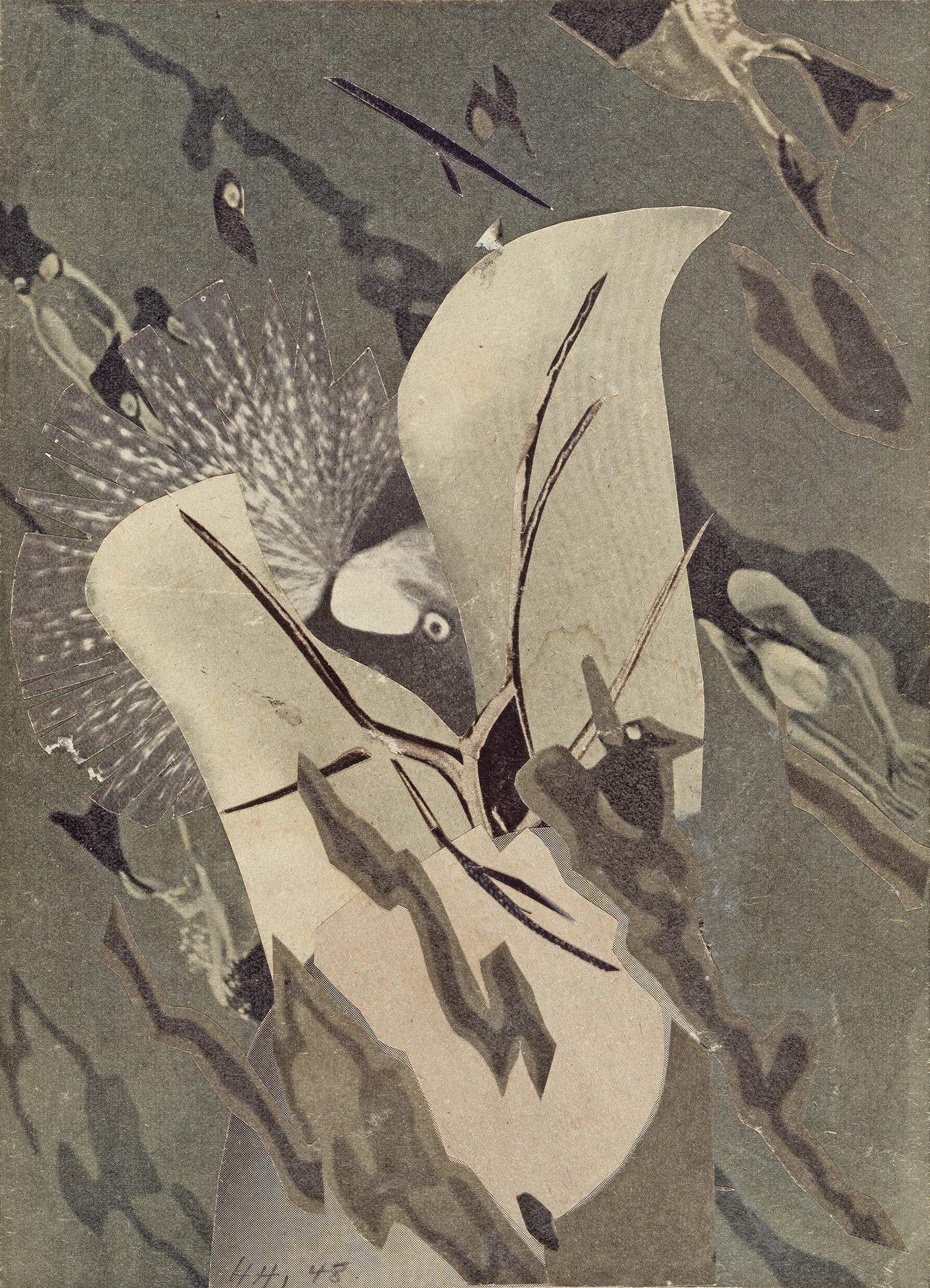 Artwork: Hannah Höch, Seidenschwanz / Silk tail (c.1948). Collage. 19.5 x 14 cm. Artwork courtesy of Institut für Auslandsbeziehungen.