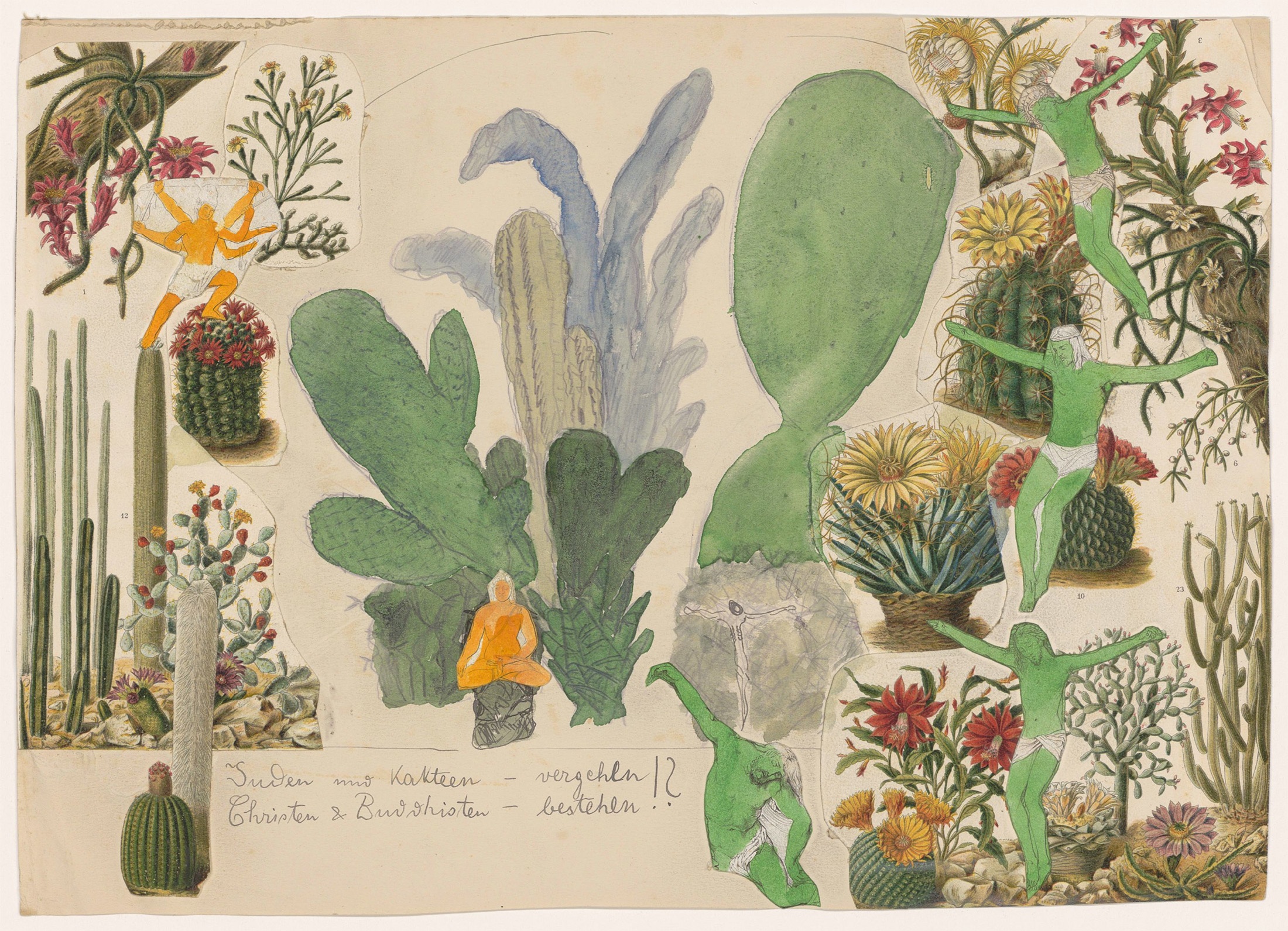 Artwork: Erwin Blumenfeld, Jews and cacti – are mortal, Christians and Buddhists – are immortal!? (c.1921–24). Caricature: ink; portrait: pencil and ink. 25 x 34.8 cm. Artwork courtesy of Kunsthaus Zϋrich, Grafische Sammlung.
